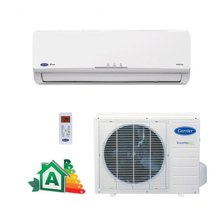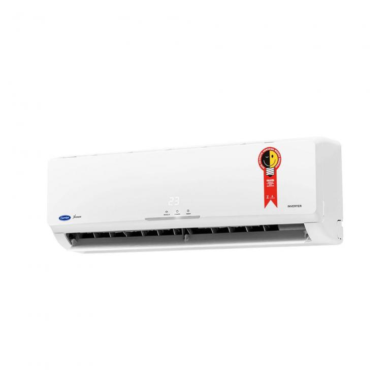 Hi-Wall Inverter Novo X-power O Carrier X Power leva climatização e economia para seu espaço. Com o sistema Inverter, chega a economizar até 40% de energia comparado aos equipamentos comuns. Possui triplo sistema de filtragem, que garante um ar mais puro e utiliza fluído refrigerante ecológico R 410-A,que não agride a Camada de Ozônio. Traz selo Procel em todas as categorias. Disponível nos modelos frio e quente/frio nas capacidades 9.000, 12.000, 18.000 e 22.000 BTU/h.